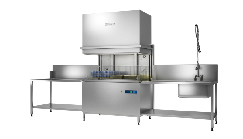 The automatic hoodlift automatically opens the hood at the end of the programme. When the button is pressed, the hood is closed to start the machine. It offers highest comfort for the operators.